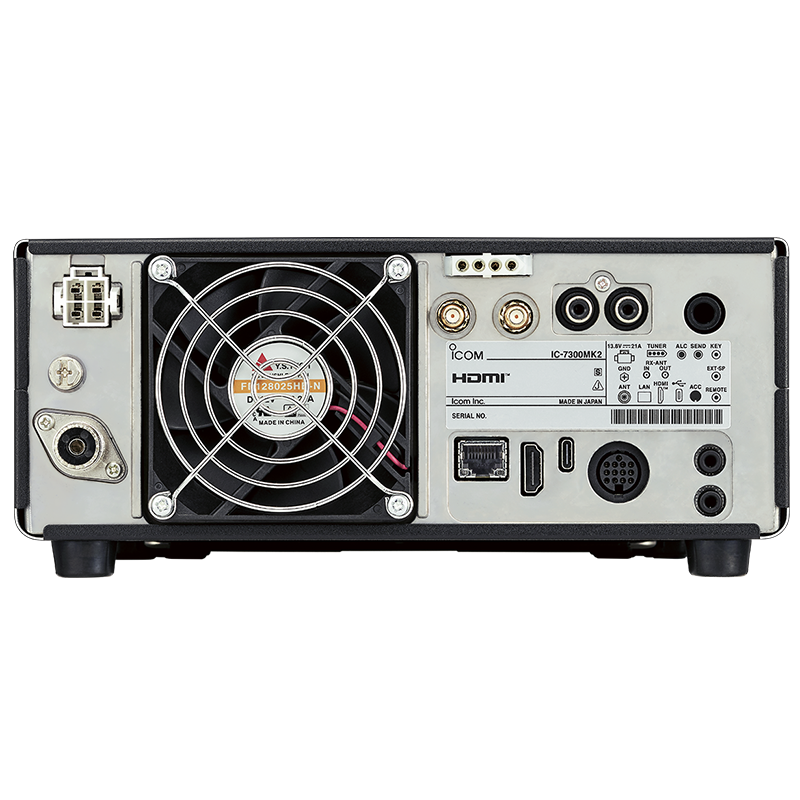 As a first for Icom’s HF/50 MHz radios, the IC-7300MK2 incorporates an HDMI™ port for external display connection. Operating information, such as frequency, scope, waterfall, and menus, can be shown on a large monitor, and audio can also be output through HDMI™ to the display’s speakers.